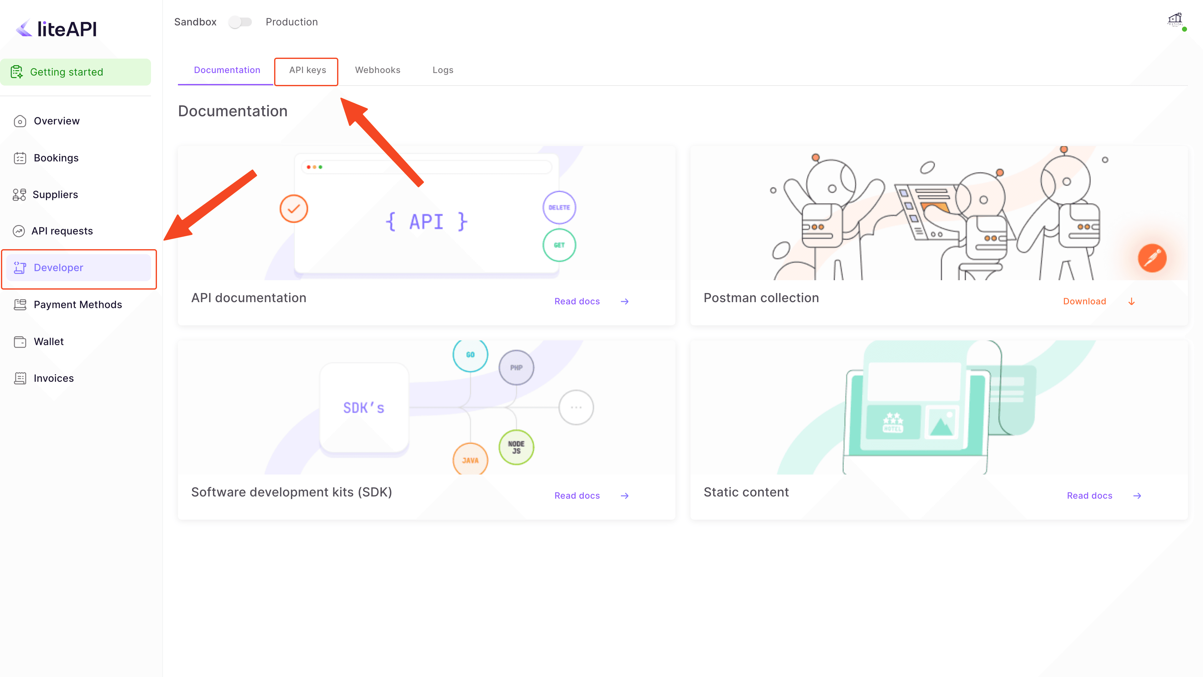 To make the most of liteAPI's sandbox environment, follow these steps: